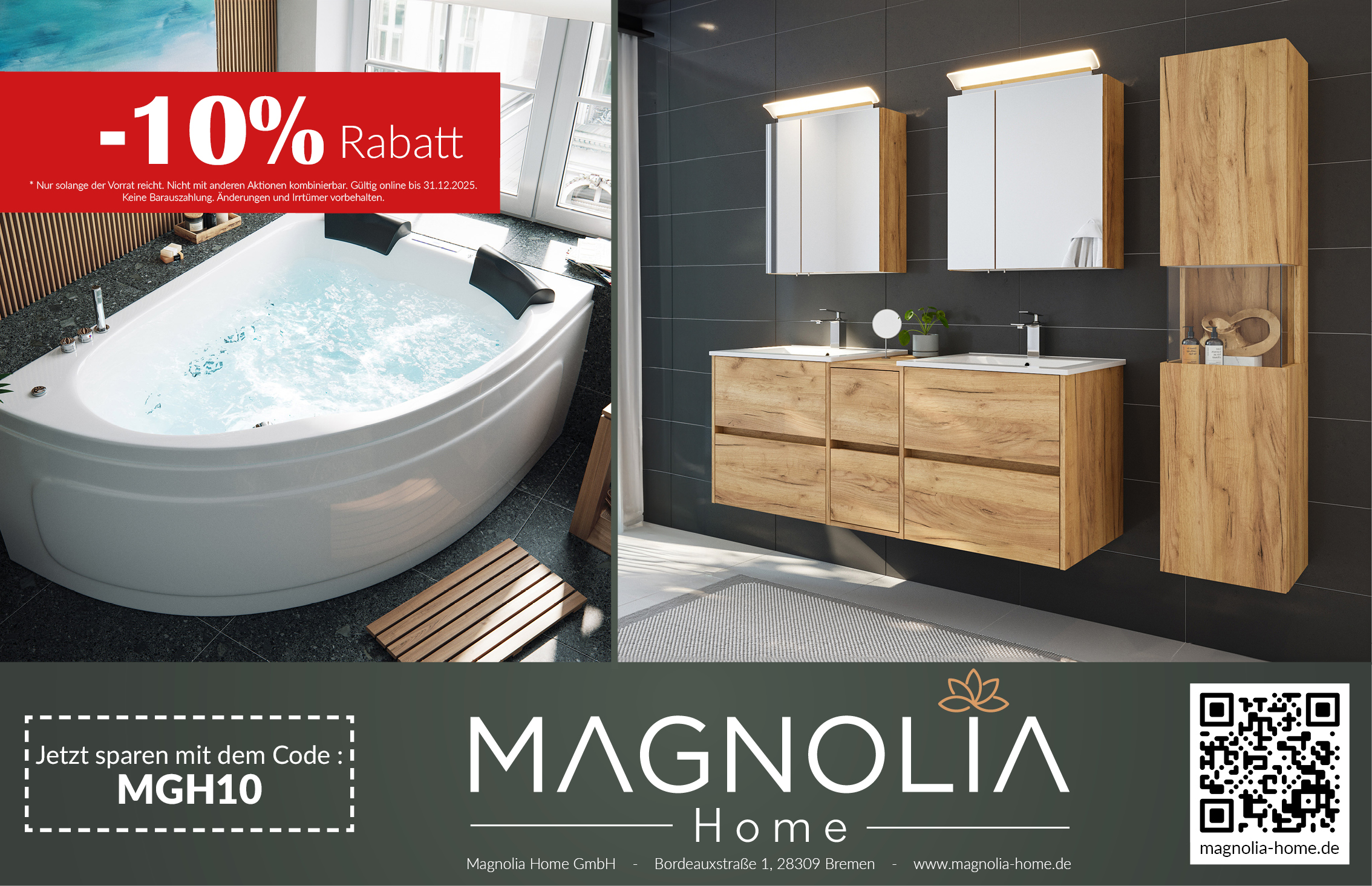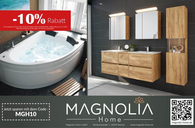 -10% RABATT auf alles bei MAGNOLIA HOME Magnolia Home GmbH Startdatum 07.07.2025 Ablaufdatum 31.12.2025 *home&living Code MGH10 Couponcode kopieren Coupon einlösen Coupon drucken! Endet in