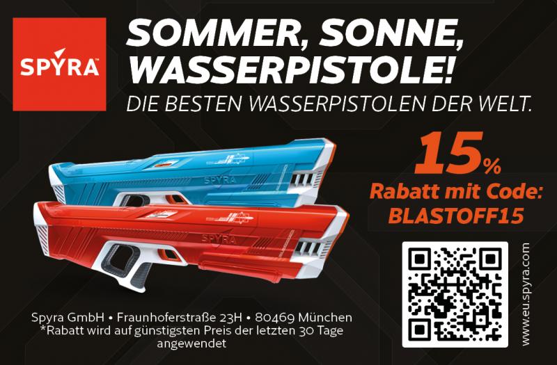 15% Rabatt! SOMMER, SONNE, WASSERPISTOLE! DIE BESTEN WASSERPISTOLEN DER WELT. Spyra GmbH Startdatum 07.07.2025 Ablaufdatum 31.12.2025 Code BLASTOFF15 Couponcode kopieren Coupon einlösen Coupon drucken! Endet in