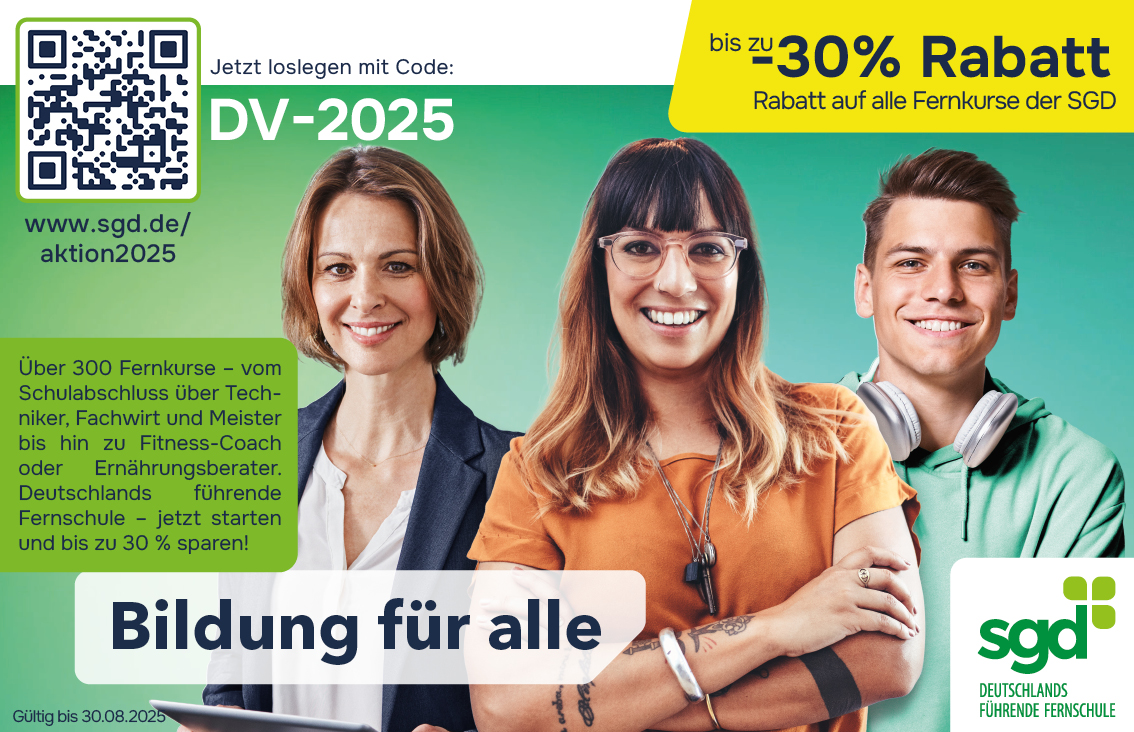 Über 300 Fernkurse – vom Schulabschluss über Techniker, Fachwirt und Meister bis hin zu Fitness-Coach oder Ernährungsberater. Deutschlands führende Fernschule – jetzt starten und bis zu 30 % sparen!