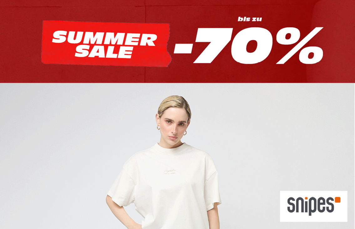 Bis zu -70% SUMMER SALE bei SNIPES. Jetzt shoppen! SNIPES Startdatum 30.07.2025 Ablaufdatum 01.10.2025 Kein Code notwendig Zum Angebot Coupon drucken!