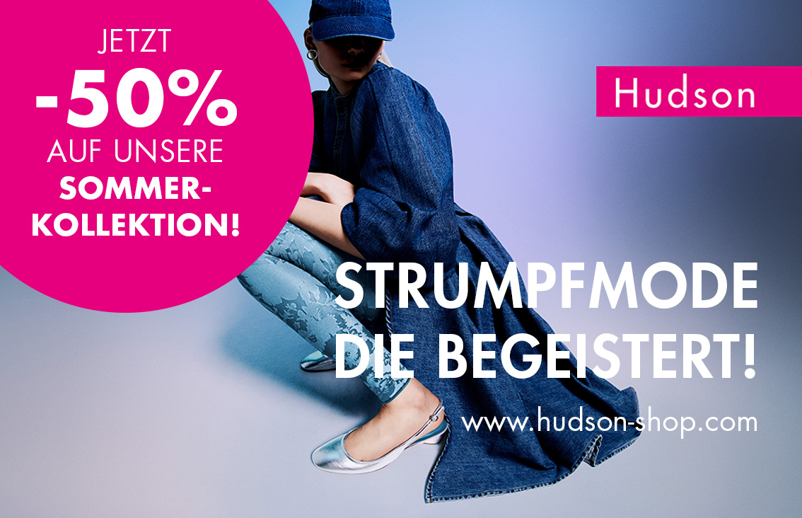 JETZT -50% AUF UNSERE SOMMER-KOLLEKTION! Hudson STRUMPFMODE DIE BEGEISTERT! KUNERT FASHION GMBH Startdatum 07.07.2025 Ablaufdatum 31.12.2025 Fashion Kein Code notwendig Zum Angebot Coupon drucken! Endet in