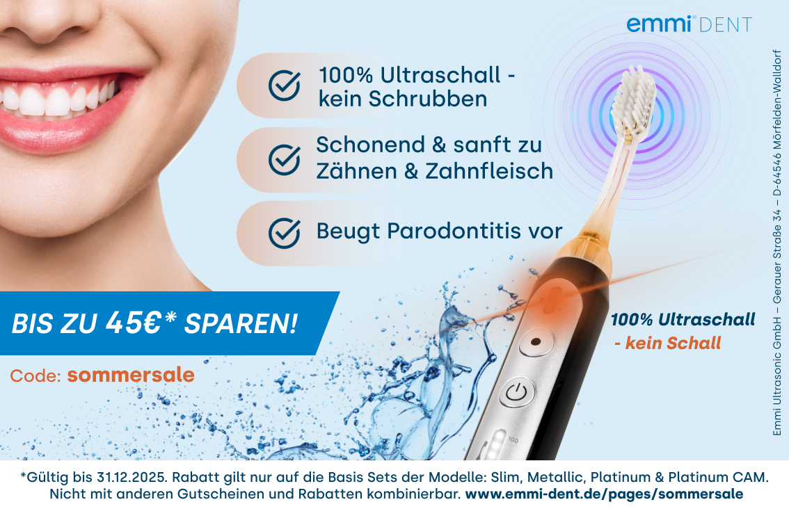 Spare bis zu 45€! Hol' Dir Dein gesundes, strahlendes Sommerlächeln. Mit 100% Ultraschall- kein Schall!