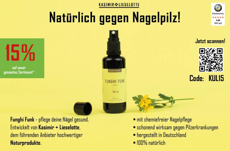 Natürlich gegen Nagelpilz! Jetzt 15% Rabatt auf Naturprodukte von Kasimir + Lieselotte sichern. Mehr Details
