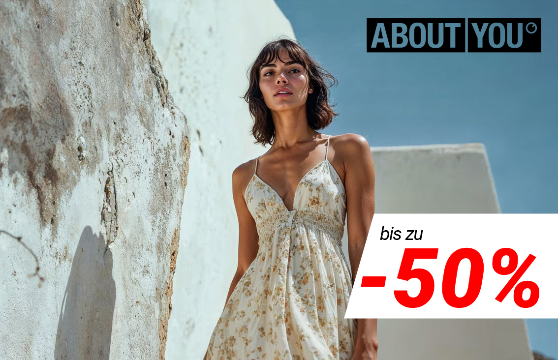 Bis zu 50% SOMMERSALE bei ABOUT YOU about you Startdatum 29.07.2025 Ablaufdatum 01.10.2025 Kein Code notwendig Zum Angebot Coupon drucken!
