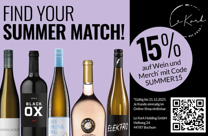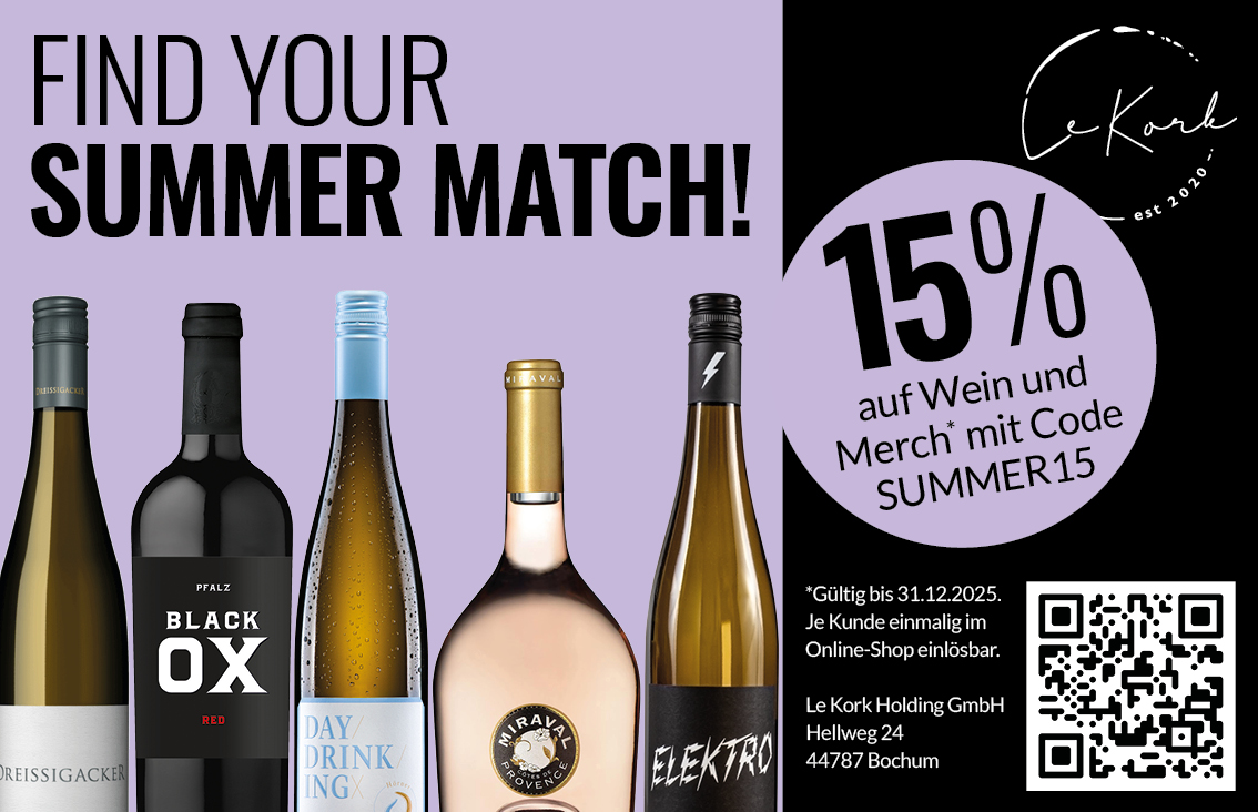 FIND YOUR SUMMER MATCH! 15% auf Wein und Merch* bei Le Kork Le Kork Holding GmbH Startdatum 07.07.2025 Ablaufdatum 31.12.2025 *food Code SUMMER15 Couponcode kopieren Coupon einlösen Coupon drucken! Endet in