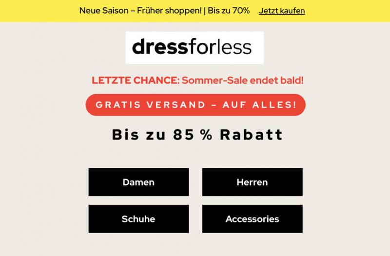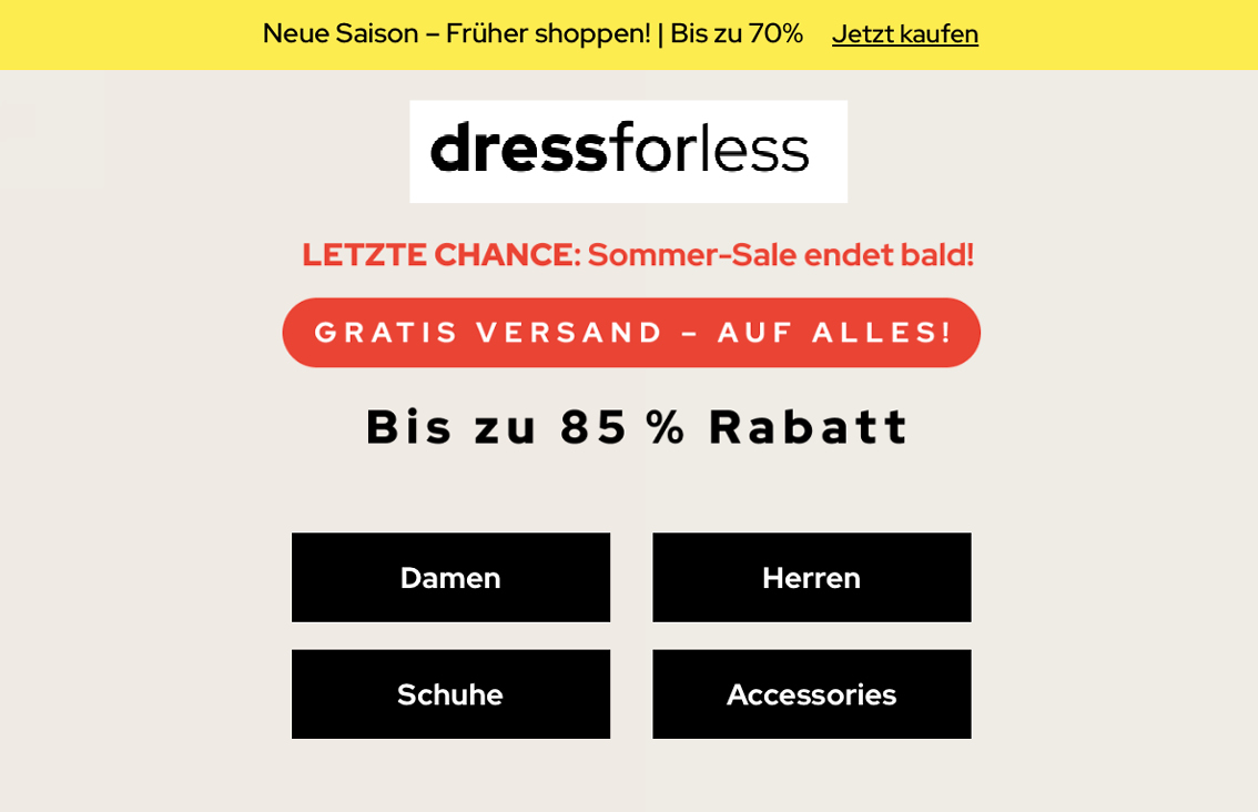 Neue Saison - Früher shoppen! | Bis zu 70% DRESS FOR LESS Startdatum 04.08.2025 Ablaufdatum 01.11.2025 Kein Code notwendig Zum Angebot Coupon drucken! Endet in