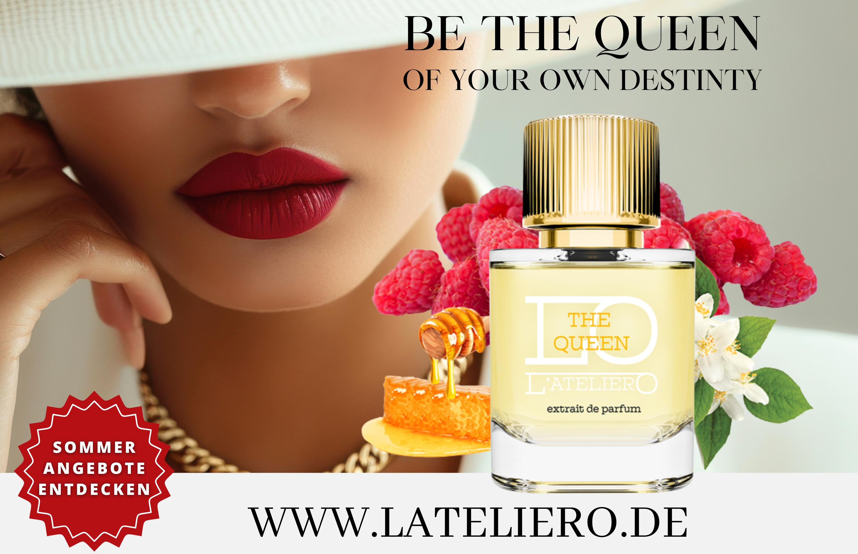 Verführerisch, intensiv & feminin: The Queen ist ein luxuriöses Parfum mit Honig, Himbeere & Jasmin. Ein Duft wie ein Statement – für Frauen, die ihren Auftritt lieben. Jetzt im Sommerangebot entdecken!