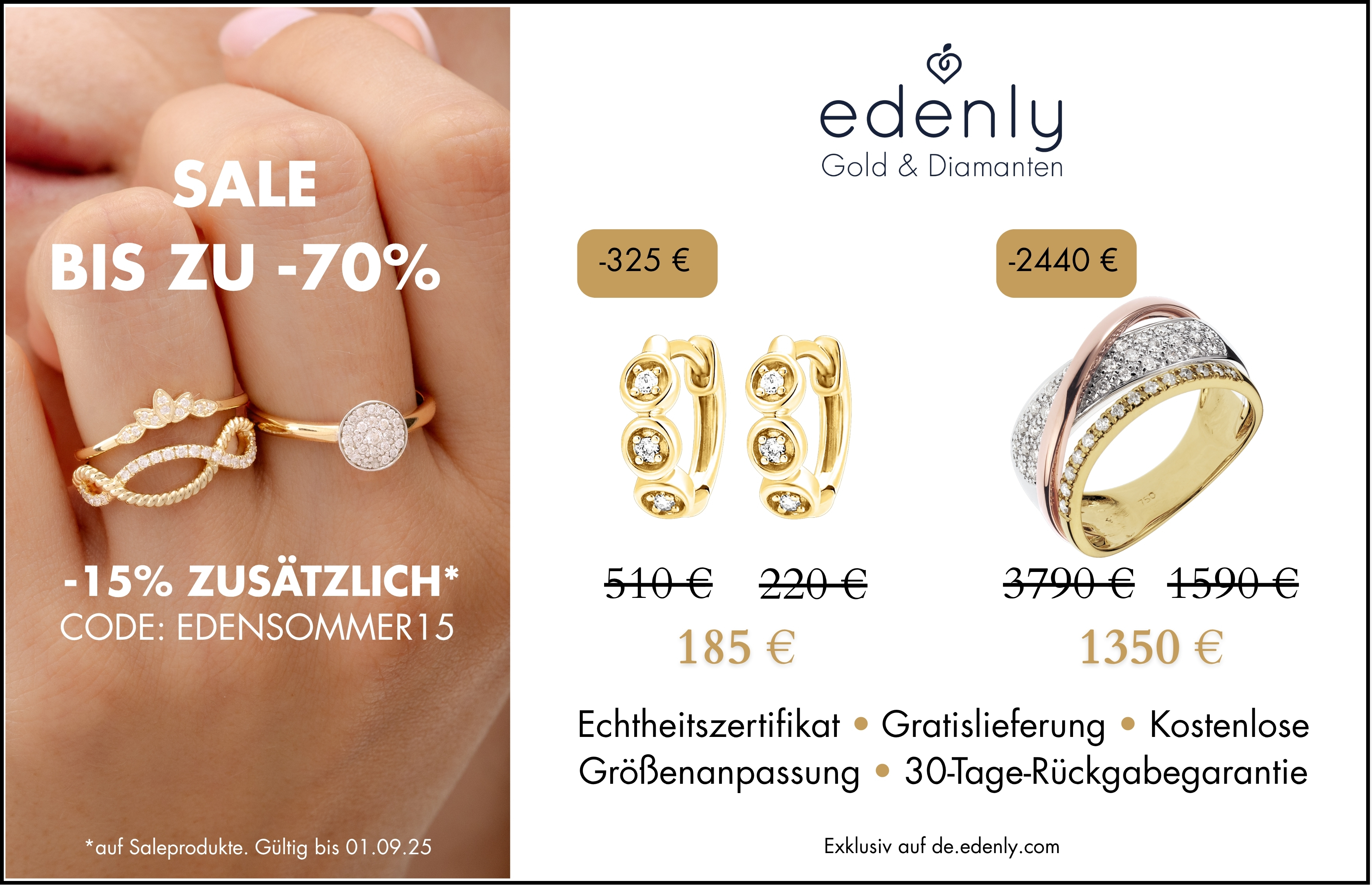 SALE BIS ZU -70% -15% ZUSÄTZLICH bei edenly Edenly SA Startdatum 07.07.2025 Ablaufdatum 01.09.2025 Code EDENSOMMER15 Couponcode kopieren Coupon einlösen Coupon drucken!