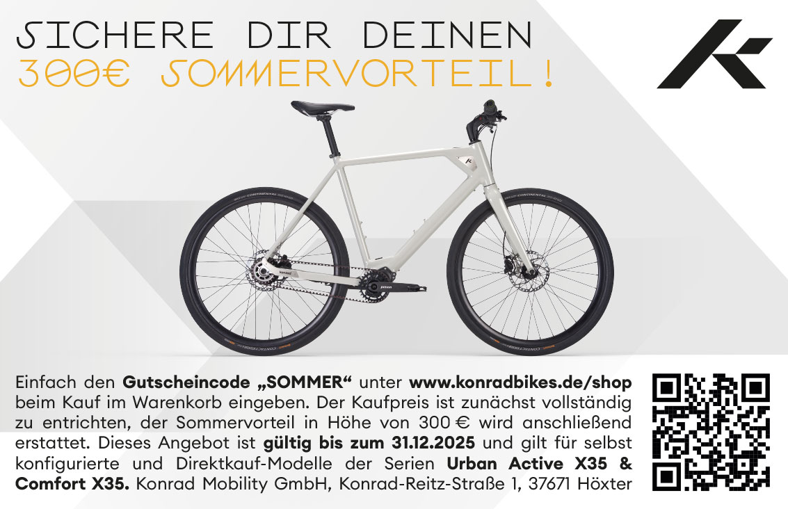 SICHERE DIR DEINEN 300€ SOMMERVORTEILAUF DEIN NEUES BIKE! Konrad Mobility GmbH Startdatum 07.07.2025 Ablaufdatum 31.12.2025 # bike sport ebike fahrrad e-bike fahrräder Code SOMMER Couponcode kopieren Coupon einlösen Coupon drucken! Endet in