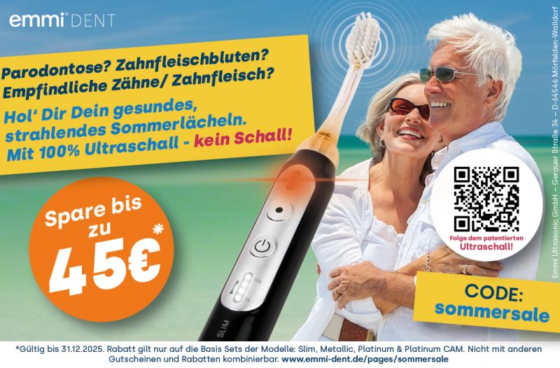 Spare bis zu 45€! Hol' Dir Dein gesundes, strahlendes Sommerlächeln. Mit 100% Ultraschall- kein Schall! Mehr Details Endet in